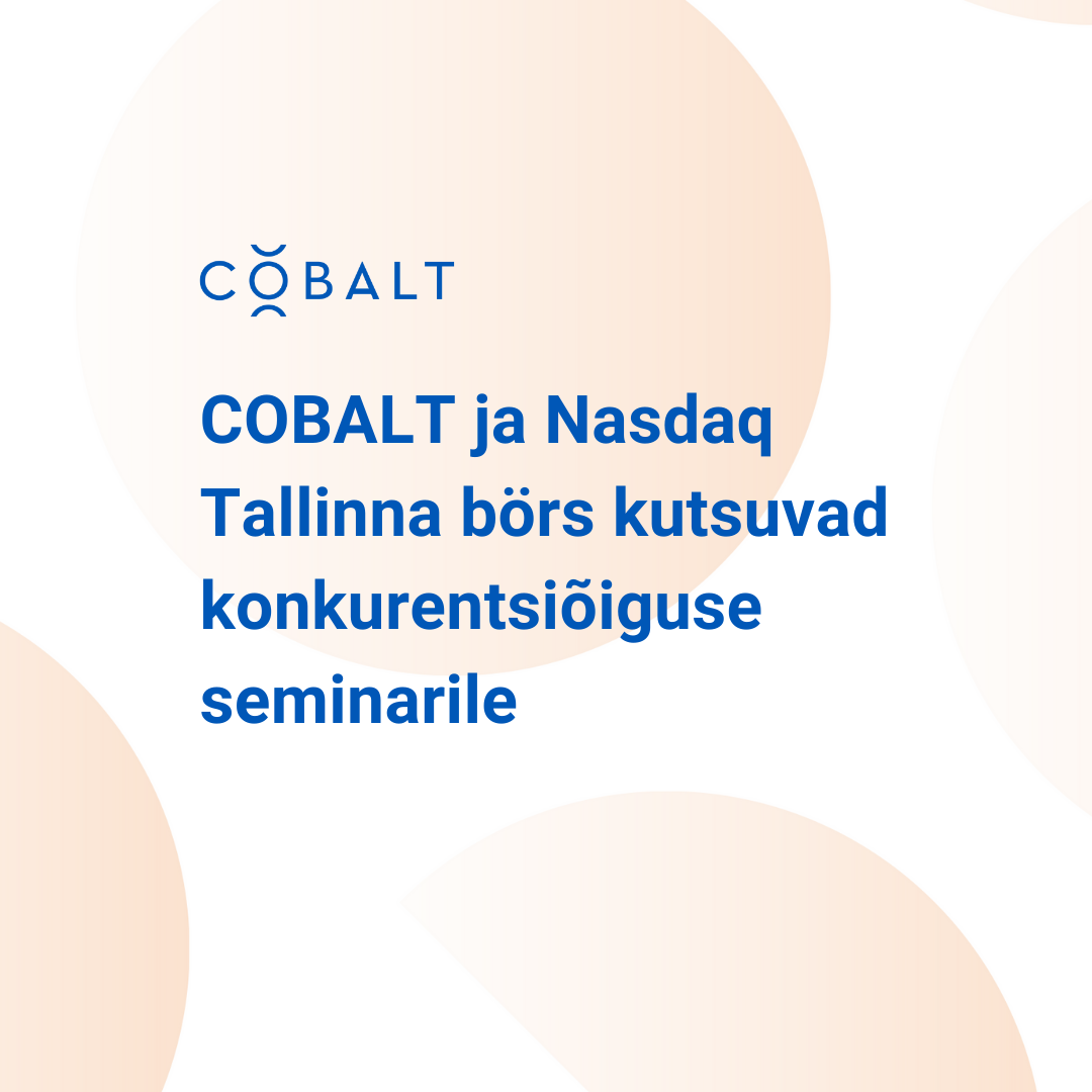 Olete oodatud igasügiseseks traditsiooniks saanud advokaadibüroo COBALT ja Nasdaq Tallinna börsi poolt korraldatavale hommikuseminarile „Viimased arengud konkurentsiõiguses – aasta ülevaade, pilguheit tulevikku ja sissevaade konkurentsijärelevalvemenetluse köögipoolele“.