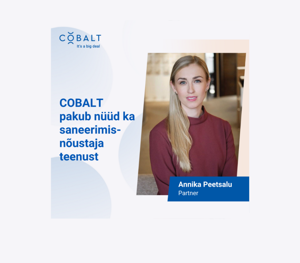 Advokaadibüroo COBALT partner Annika Peetsalu on Kohtutäiturite ja Pankrotihaldurite Koja kutsekogu juhatuse poolt määratud saneerimisnõustajate nimekirja ja tegutseb saneerimisnõustajana.