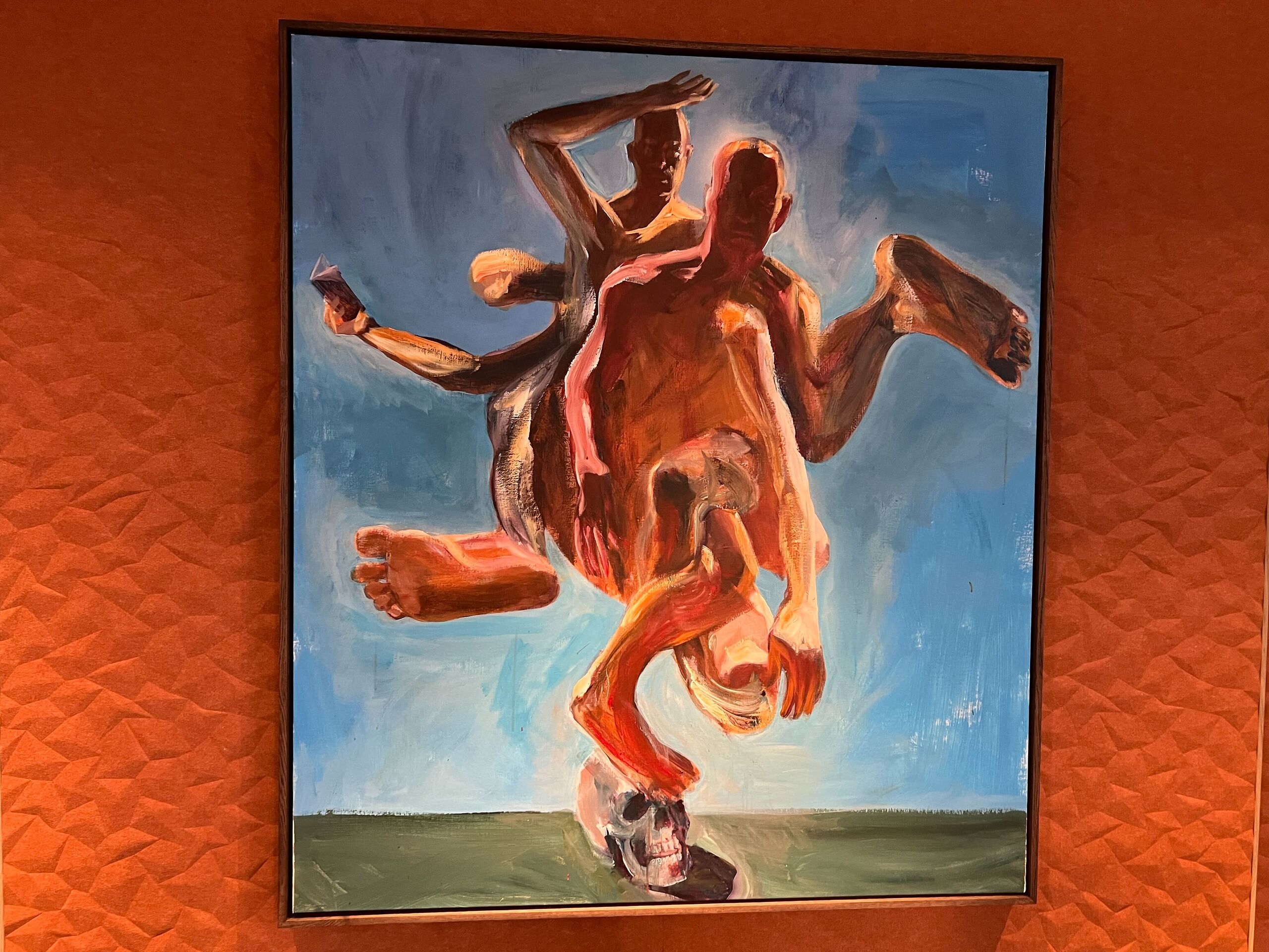 Jaan Toomiku töödest on meie büroos eksponeeritud teos nimega „Hamlet“ (2021), mida võib pidada klassikaliselt toomik-likuks teoseks nii temaatika kui ka vormi poolest. Teosel on meest kujutatud arhetüüpse tegelasena, kes on lõksus iseenda olemuses. Pealuu ja raamat viitavad igavikulistele küsimustele, kuid pealkiri „Hamlet“ toob mängu ka kuulsa Taani printsi, kes on enda küsimusega „Olla või mitte olla?“ eksistentsialismi ajalukku jäädvustanud.