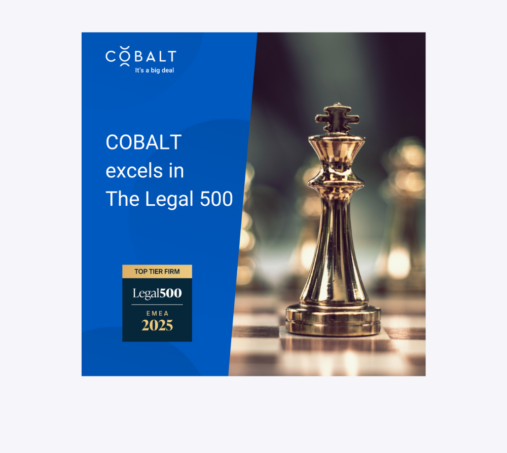Advokatų kontora COBALT pelnė išskirtinį pripažinimą 2025 m. „The Legal 500 Europe“ žinyne – net 23 pagrindinėse praktikos srityse įvertinta aukščiausiu „Tier 1“ lygiu. Be to, Estijos, Latvijos ir Lietuvos biurai taip pat pelnė „Tier 2“ įvertinimus dar 7 praktikos srityse, taip sustiprindami kontoros lyderystę Baltijos šalyse.